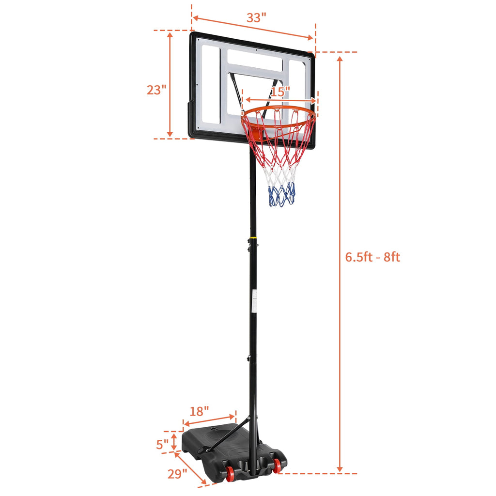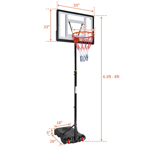 33 In. Portable Basketball Hoop Stand, adjustable indoor and outdoor