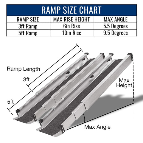 Adjustable Wheelchair Ramp, 3-5 Ft Long, Aluminum