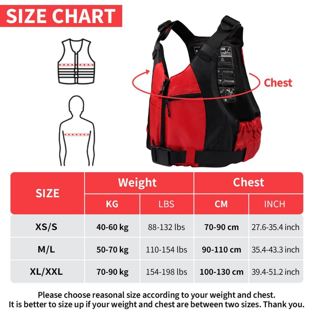 - 👍【Unique Design】 There is a front zip pocket which can be used for storing small items. Large arm holes, allow maximum movement. The life jacket for adults is easy to store and pretty light for taking abroad.