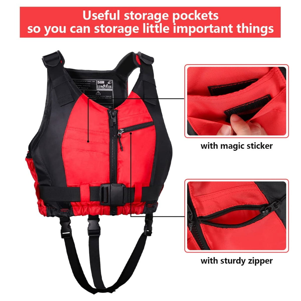 - 👍【Easy to Wear】 Zipper closure and quick release buckles make this life vest easy on and off. And the zipper can be moved smoothly