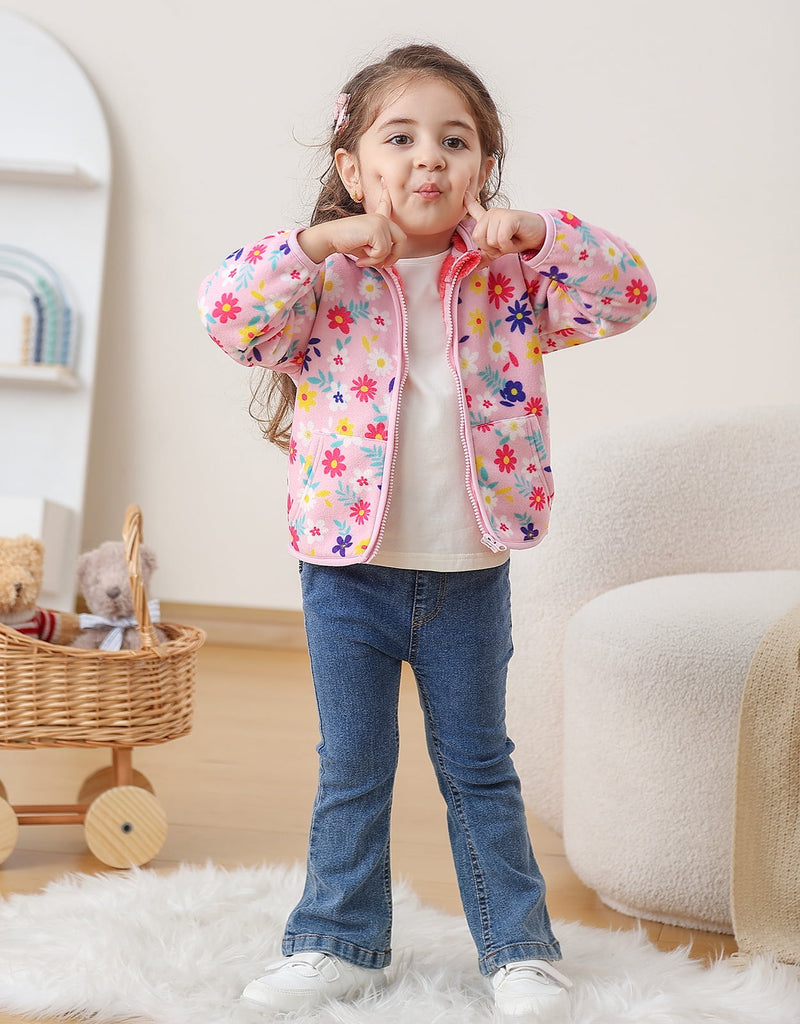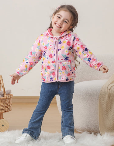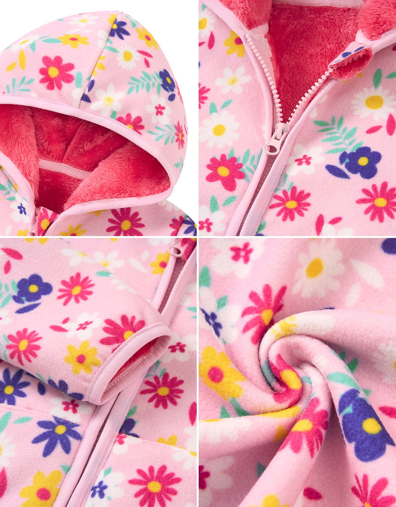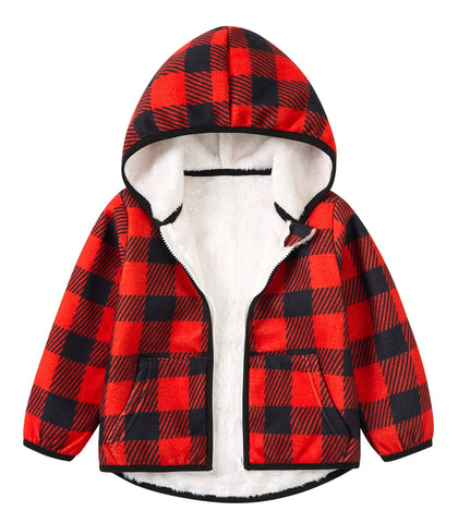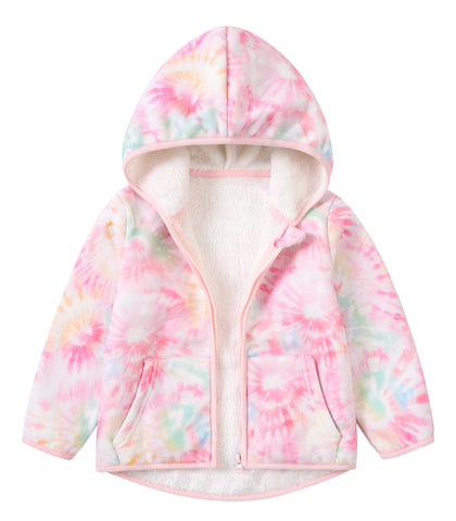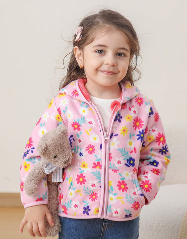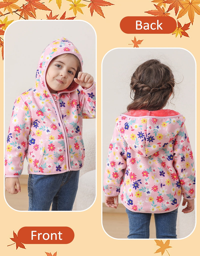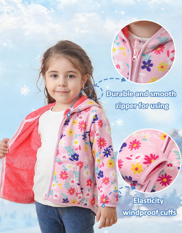 Aideaone Toddler Fleece Jacket Zip up Baby Boys Girls Hooded Winter Coat Long Sleeve Kids Thick Warm Outerwear