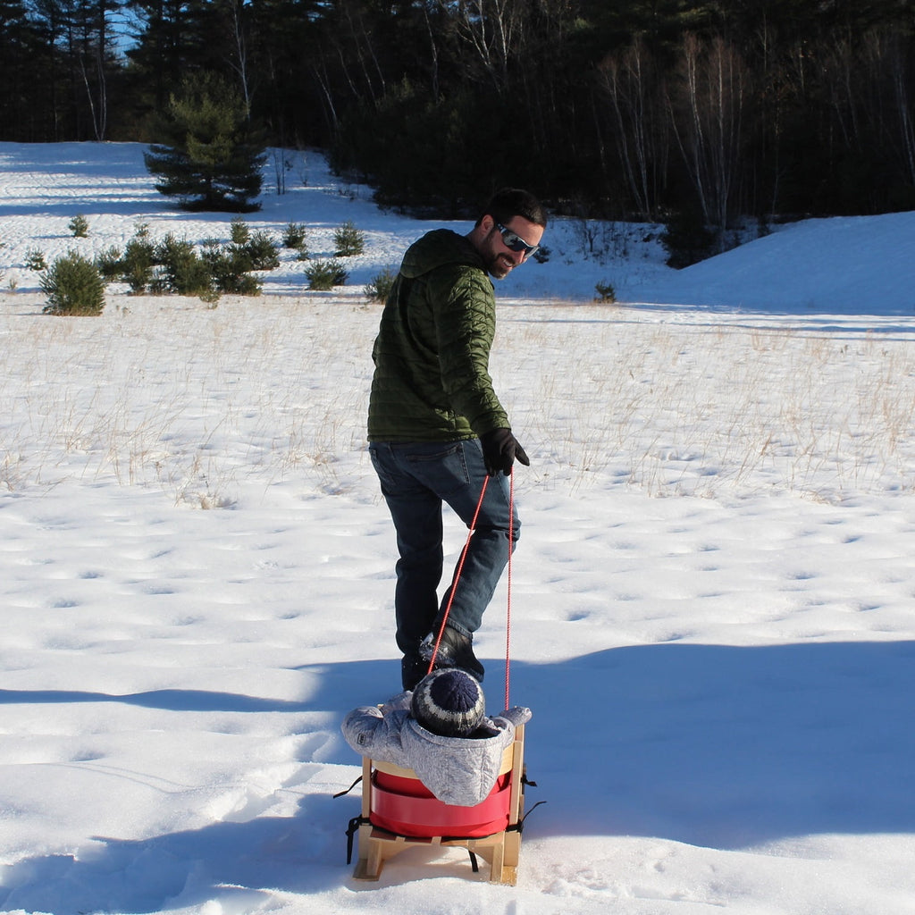 Baby Boggan — This Flexible Flyer wooden baby sleigh is a Fun way to tow little kids through the snow with Classic style