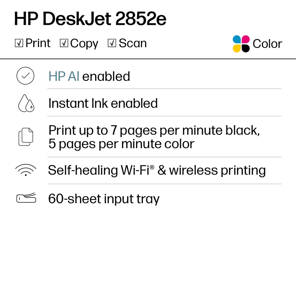 HP DeskJet 2852e Wireless All-in-One Color Inkjet Printer (White), Scanner, Copier, 3 months Free Instant Ink